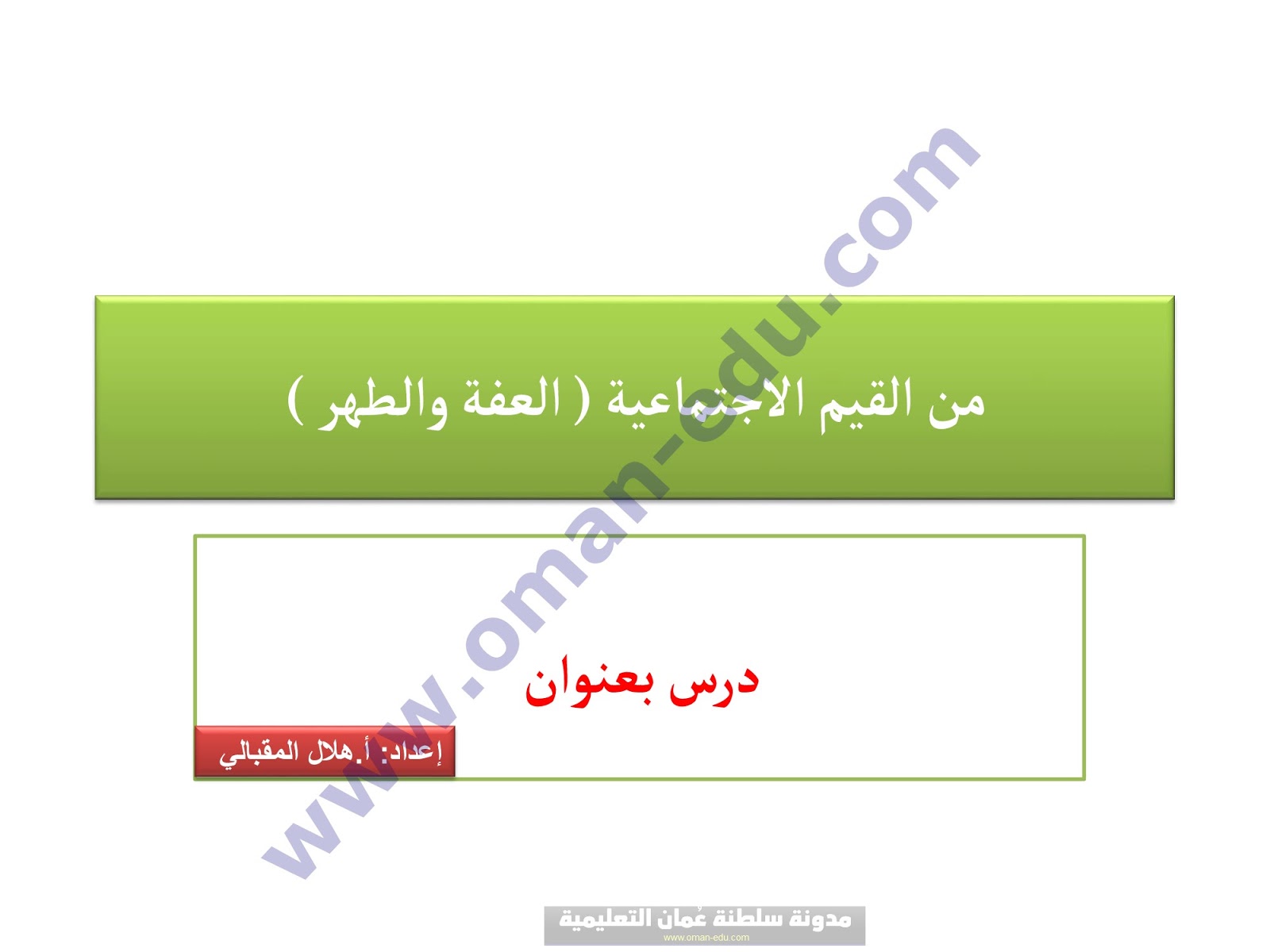 قيمنا ملخص درس من القيم الإجتماعية العفة والطهارة