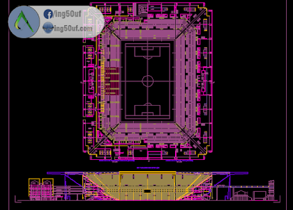 مخطط ملعب كرة قدم للالعاب الاولمبية اوتوكاد Dwg