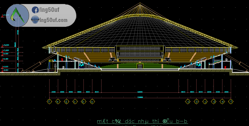 مخطط مشروع ملعب متعدد الرياضات مغطى اوتوكاد Dwg