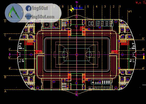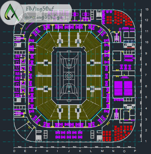 مخطط ملعب متعدد الرياضات اوتوكاد Dwg