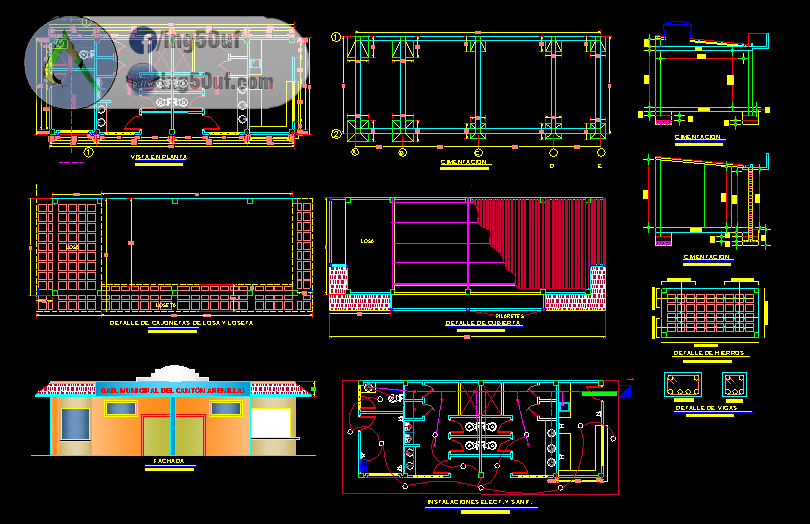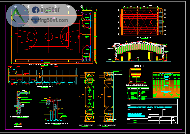 مخطط مشروع ملعب متعدد الرياضات كاملا اوتوكاد Dwg