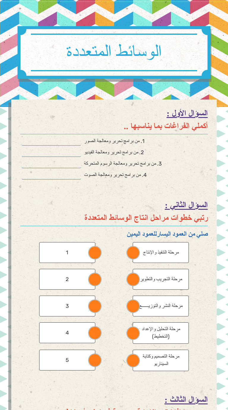 ورقة عمل الوسائط المتعددة Exercise