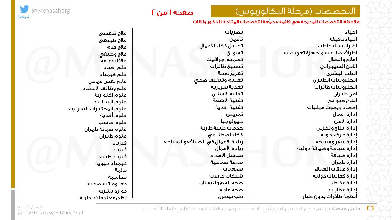 Menasah منص ة On Twitter تخصصات برامج البكالوريوس في برنامج وظيفتك وبعثتك للمرحلة الثالثة عشر