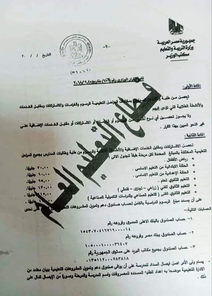 رسميا ننشر قرار رسوم المصروفات الدراسية للعام الدراسي 2021 2020