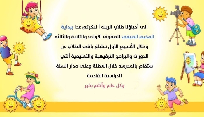 شاشة نت غدا المخيم الصيفي للصفوف الأولى والثانية والثالثة لمدرسة الرينة أ