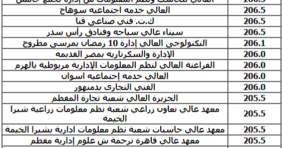 قائمة بأسماء المعاهد العالية الخاصة لطلاب شعبة نظم معلومات بالدبلومات الفنية شبابيك