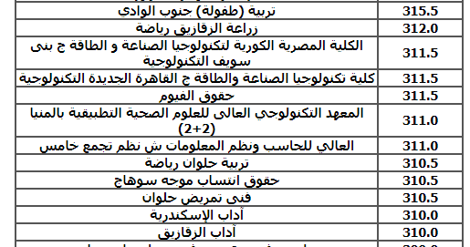 توقعات تنسيق وبيان بالحد الأدني للقبول بكليات ومعاهد المجموعة العلمية لعام 2020