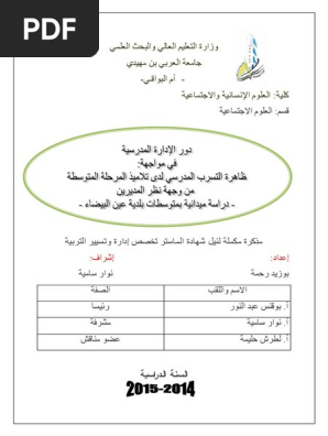 دور الإدارة المدرسية في مواجهة ظاهرة التسرب المدرسي لدى تلاميذ المرحلة المتوسطة من وجهة نظر المديرين Pdf