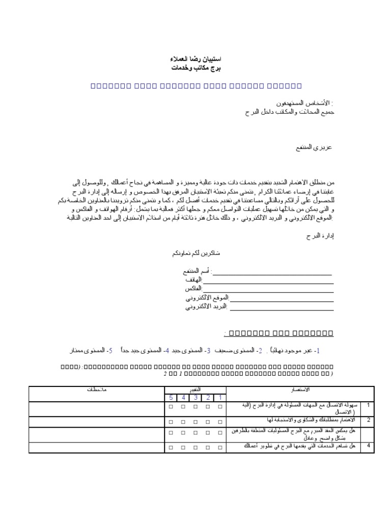 جودة الخدمات نموذج استبيان رضا العملاء عن الخدمات